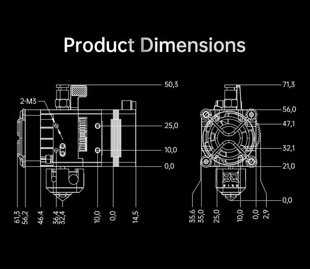 Konstrukcja ekstrudera została zoptymalizowana pod kątem efektywnego odprowadzania ciepła. Radiator w połączeniu z wentylatorem skutecznie chłodzą system, zapobiegając przegrzewaniu i zapewniając dłuższą żywotność urządzenia. Obudowa wykonana z wytrzymałego stopu aluminium 6061 T6 gwarantuje trwałość i odporność na uszkodzenia mechaniczne, nawet w trudnych warunkach eksploatacji.