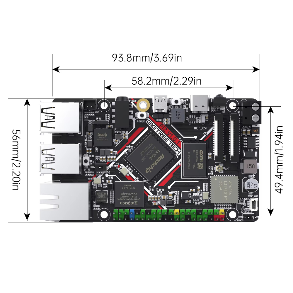 BIGTREETECH Pi 2 to nowoczesna płyta SBC (Single Board Computer) zaprojektowana z myślą o druku 3D i obsłudze oprogramowania Klipper. Wyposażona w czterordzeniowy procesor Rockchip RK3566 Cortex-A55 o taktowaniu 1,8 GHz oraz 2 GB pamięci RAM LPDDR4, zapewnia płynną i stabilną pracę nawet przy wymagających zadaniach. Dzięki wbudowanej pamięci eMMC o pojemności 32 GB, system operacyjny i dane użytkownika są przechowywane z większą niezawodnością i szybkością niż w przypadku tradycyjnych kart microSD.