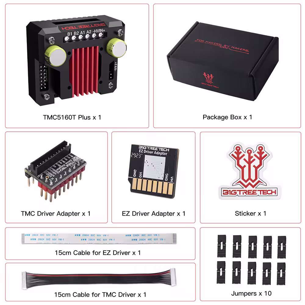 TMC5160T Plus V1.0 jest kompatybilny z szeroką gamą płyt głównych, takich jak BIGTREETECH Octopus Pro, SKR V1.4 Turbo, SKR 3 czy Manta M8P, co czyni go wszechstronnym i uniwersalnym wyborem dla wielu projektów. Dzięki kompaktowej konstrukcji i łatwości integracji jest doskonałym rozwiązaniem dla użytkowników poszukujących niezawodnego sterownika silnika krokowego, który spełni zarówno potrzeby hobbystów, jak i profesjonalistów.