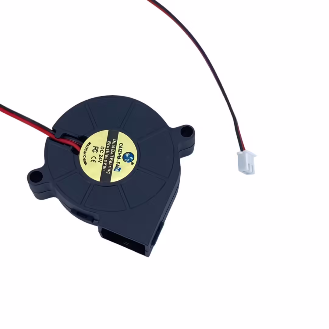 Wentylator typu blower 5015 24V to niewielki, ale wydajny wentylator chłodzący, który świetnie sprawdza się w drukarkach 3D, komputerach oraz innych urządzeniach elektronicznych. Dzięki kompaktowej budowie skutecznie odprowadza ciepło, pomagając utrzymać optymalną temperaturę podzespołów. Napięcie zasilania 24V sprawia, że jest kompatybilny z wieloma systemami zasilania, przewód 28cm i jego niewielkie wymiary – 50 mm x 50 mm x 15 mm – umożliwiają łatwy montaż nawet w ograniczonej przestrzeni, zapewniając efektywne chłodzenie tam, gdzie jest to potrzebne.