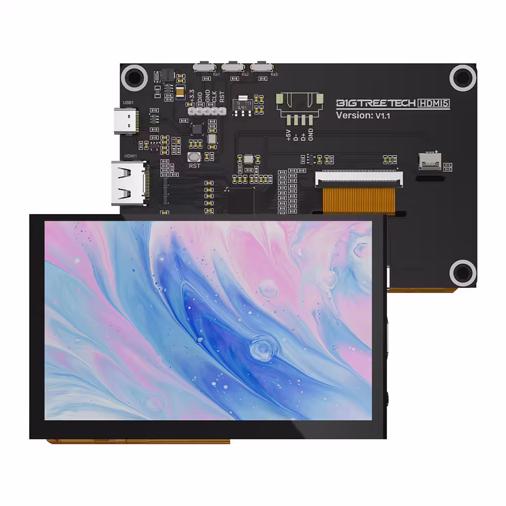 HDMI 5 to zaawansowany wyświetlacz HD stworzony przez zespół techniczny BIQU specjalnie dla użytkowników drukarek 3D korzystających z systemu Klipper. Kompatybilność z Raspberry Pi4, Pi4B+CB1, BTT PI, a także z płytami głównymi z serii Manta, takimi jak M8P+CB1, M4P+CB1 czy E3EZ+CB1, oraz innymi mini komputerami.