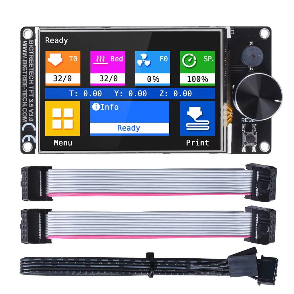 BIGTREETECH TFT35 V3.0.1 to 3,5-calowy ekran dotykowy o rozdzielczości 480×320 pikseli, wyposażony w mikrokontroler ARM Cortex-M3 STM32F207VCT6 o taktowaniu 120 MHz. Urządzenie obsługuje dwa tryby pracy: tryb dotykowy UART oraz klasyczny tryb LCD12864, co zapewnia szeroką kompatybilność z różnymi płytami głównymi, takimi jak SKR MINI E3 czy SKR E3 DIP.
